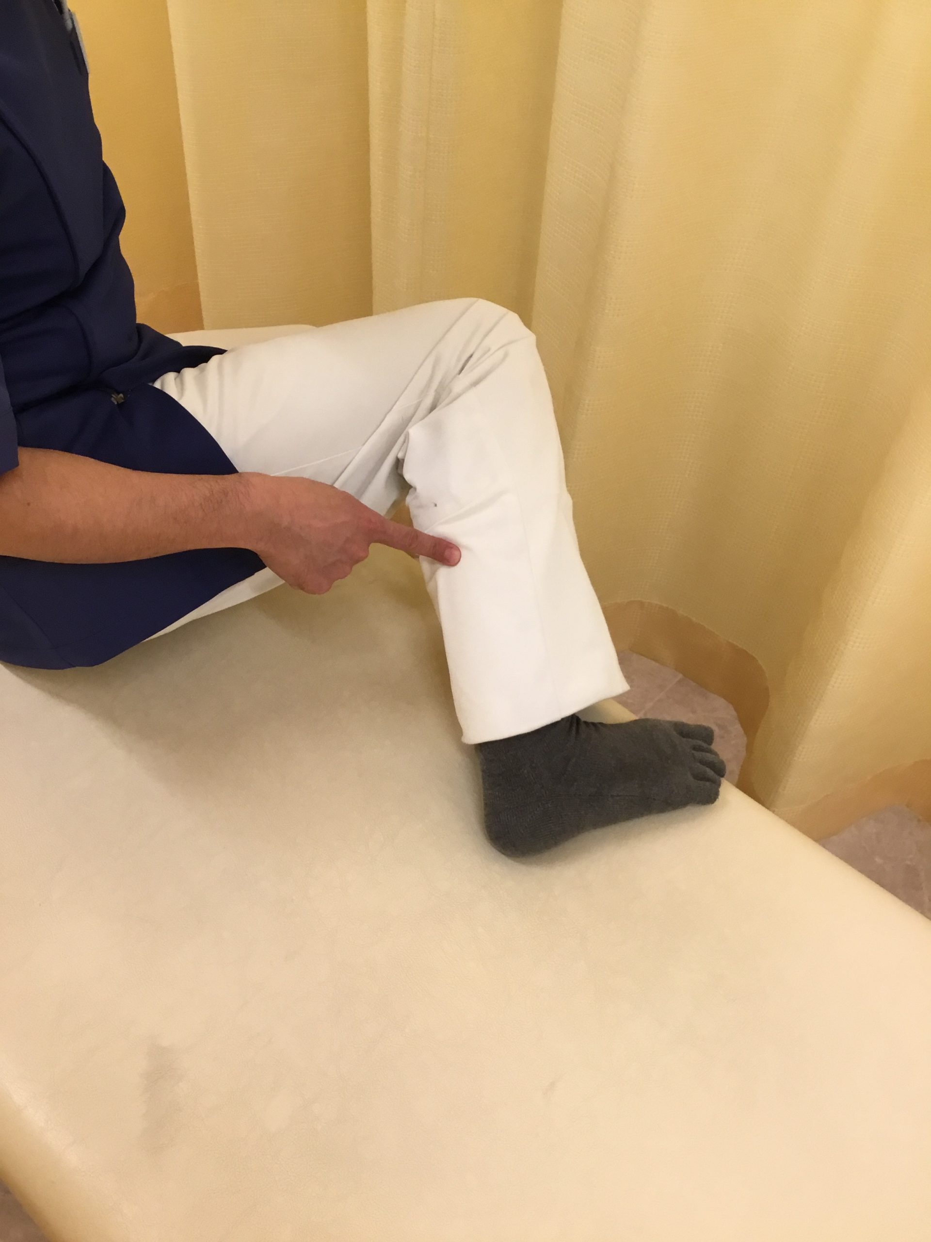 この状態で足の親指を曲げたり伸ばしたりすると指の下で筋肉がうごくのが分かると思います。