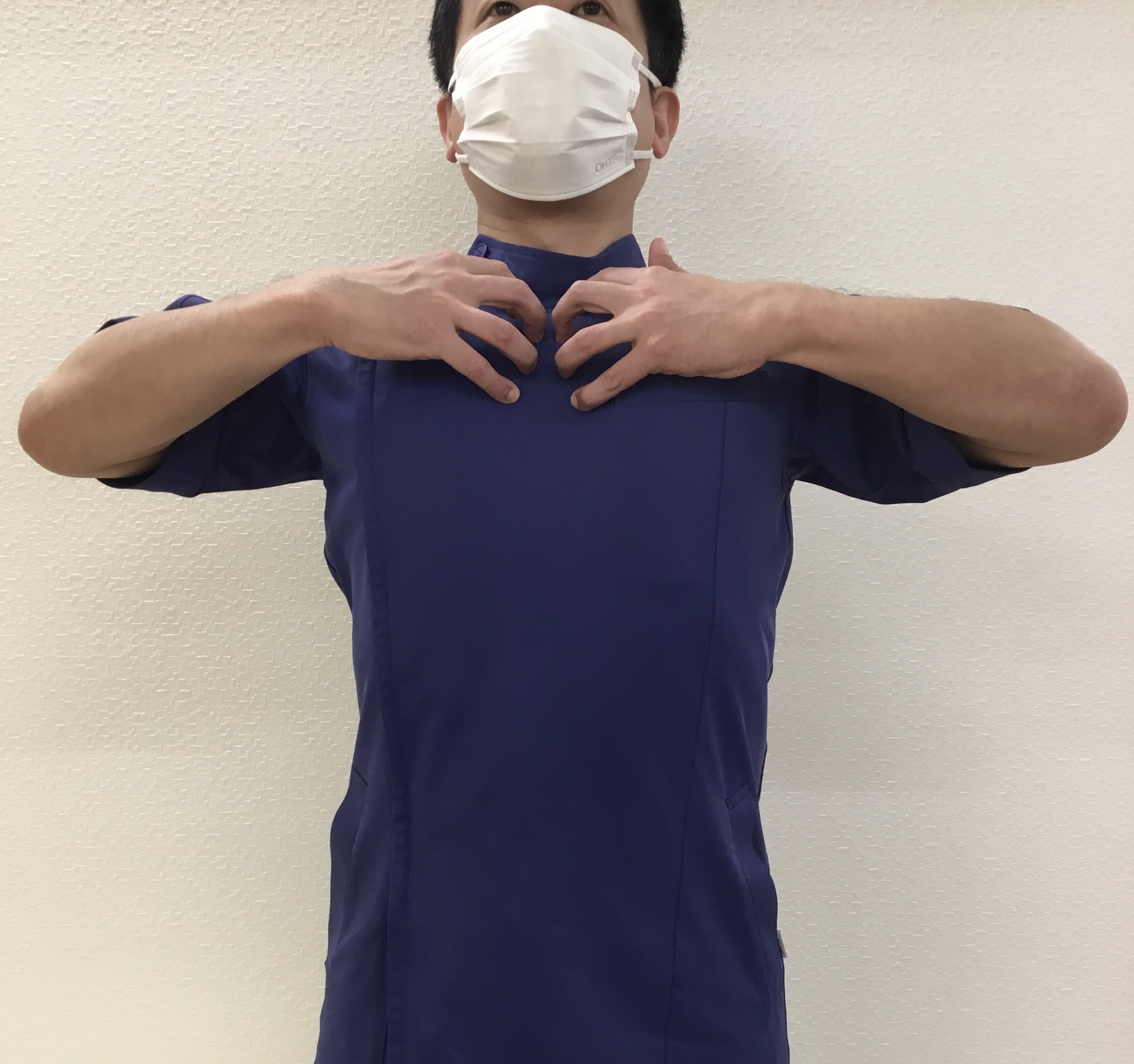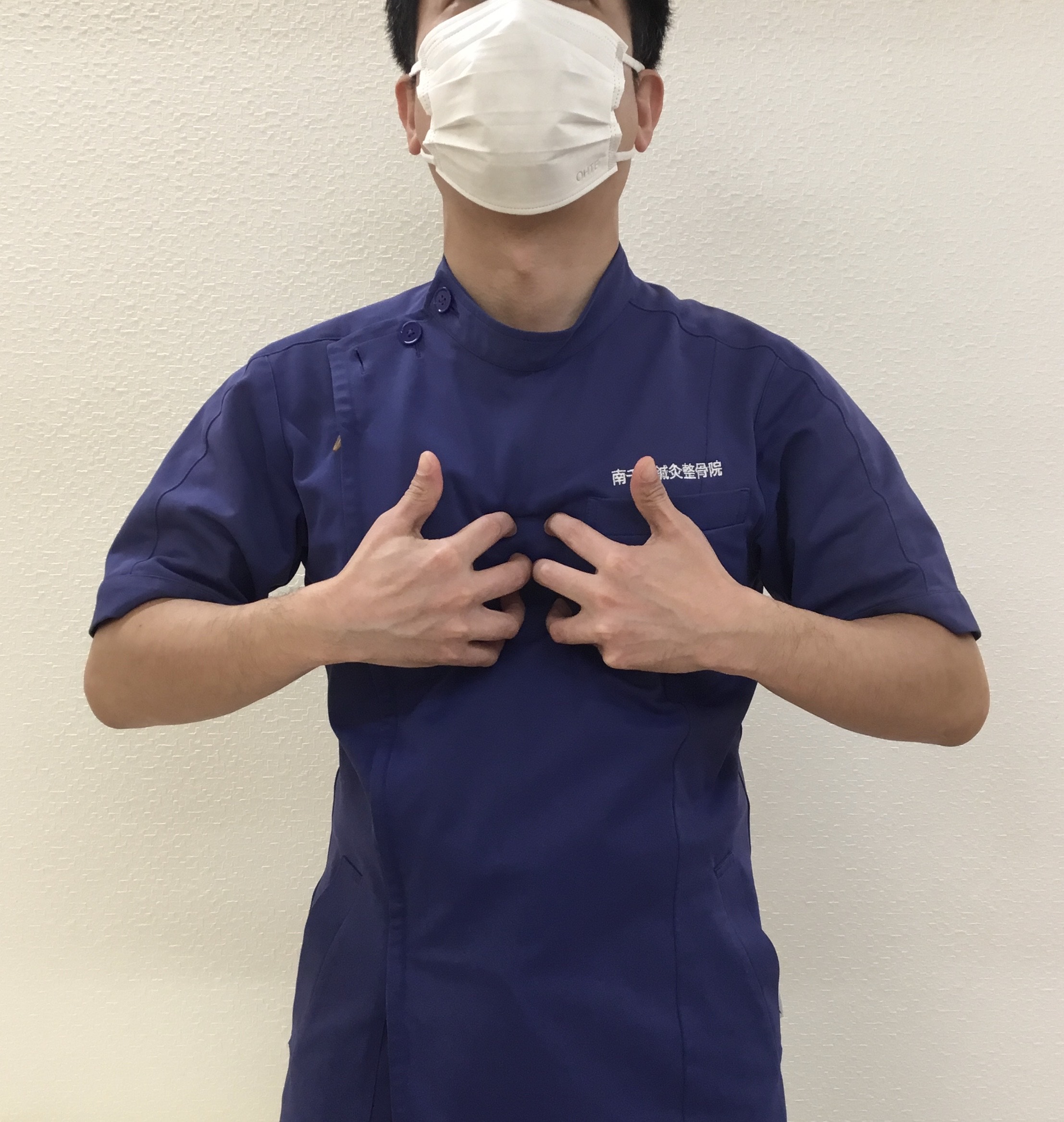 これを10回ほどやって、下の方に手を移し、さらに10回ほど深呼吸をします。