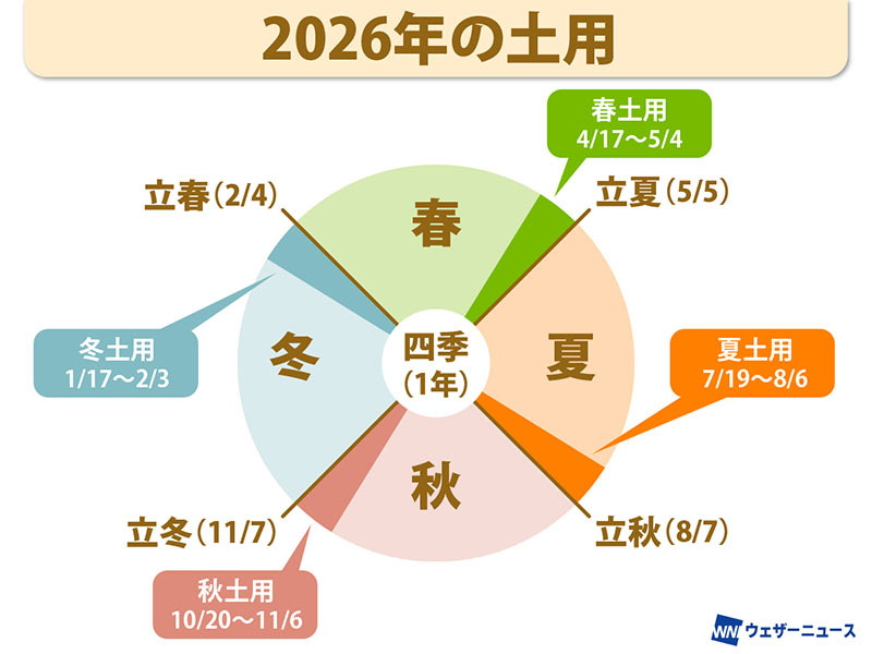 実は土用は年に4回、立春・立夏・立秋・立冬の直前に必ずやってきます。
